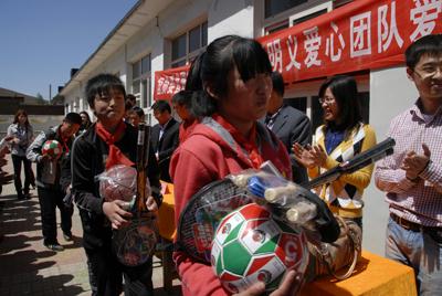 國資委直屬機關郭明義愛心團隊公益活動 穿過重重煙霧,沿著唯一一條通向學校的泥濘公路來到三河市段甲嶺鎮蔣福山小學。這里交通閉塞,環境污染嚴重,經濟落后,但是這些都沒有使這里的孩子們放棄求學的欲望,反而激發起了大家更強烈的學習熱情和改變家鄉的愿望。看到150多個孩子稚嫩、純樸、可愛的笑臉,志愿者們心情非常激動,紛紛把帶來的學習用品和體育用品送到孩子們手中。隨后,大家來到課堂上,為孩子們傳授科學文化知識,回答孩子們提出的問題,鼓勵他們熱愛學習,要努力學習科學文化知識,做一個勇敢、堅強、有益于社會的人。志愿者們在表演了自編的節目后,又來到操場上,和孩子們共同做游戲,并植下了愛心樹,祝愿孩子們能在社會各界愛心人士的幫助下和關心下茁壯成長,將來成為社會主義合格的建設者和接班人。