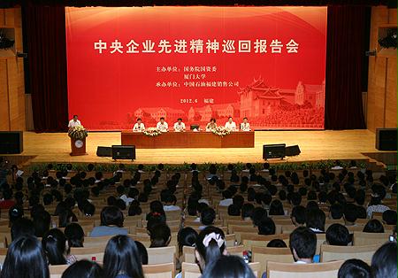 本場報告會是中央企業(yè)先進(jìn)精神巡回報告會首次在大學(xué)舉辦。報告會由國務(wù)院國資委和廈門大學(xué)共同主辦。