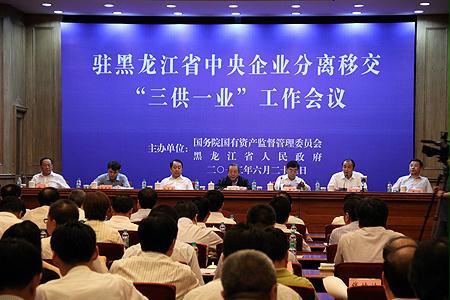 為推進中央企業分離辦社會職能,做好駐黑央企分離移交“三供一業”(供水、供電、供熱和物業管理)工作,6月28日上午,國務院國資委與黑龍江省人民政府在哈爾濱共同召開駐黑龍江省中央企業分離移交“三供一業”工作會議。國務院國資委副主任、黨委副書記邵寧和黑龍江省人民政府副省長張建星出席會議并講話。黑龍江省政協黨組副書記、省國資委黨委書記趙克非和國務院國資委副秘書長郭建新出席了會議。會議由黑龍江省人民政府省長助理、省國資委主任趙杰主持。會上,哈爾濱市政府介紹了分離移交“三供一業”有關政策及經驗;哈電集團、中航工業東安公司、兵器工業集團、國家電網代表有關中央企業作了發言;國務院國資委與黑龍江省人民政府簽署了《關于駐黑龍江省中央企業分離移交“三供一業”工作協議》,有關企業與接收單位簽訂了《分離移交協議》。