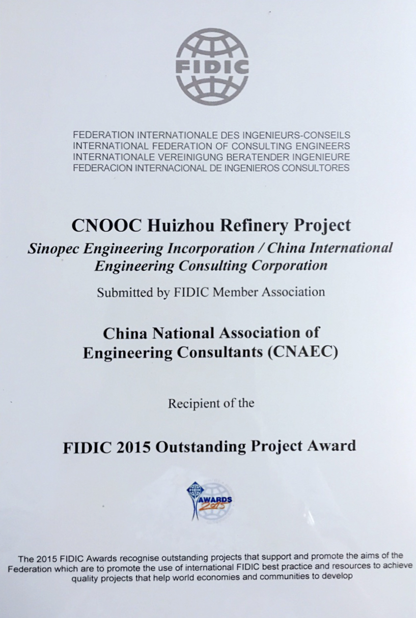 中海油惠州煉油項目工程獲FIDIC獎(2015年)
