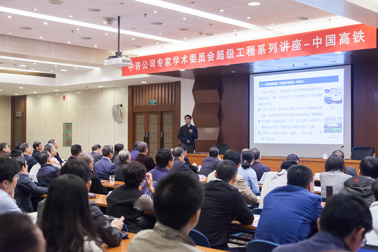 2017年10月16日上午,公司專家學術委員會舉辦第三期中國超級工程系列講座,邀請原鐵道部副部長盧春房作了題為《中國高速鐵路創新與發展》的學術講座,并進行了現場互動交流。