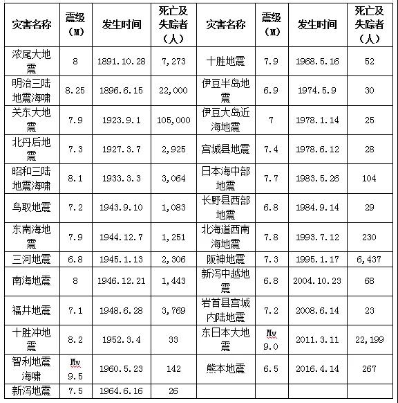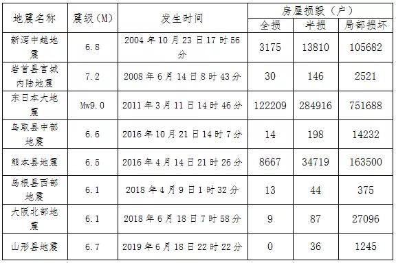 一、日本山形地震與我國長寧地震傷亡損失對比 2019年6月17日22時55分,我國四川省宜賓市長寧縣(北緯28.34度,東經104.90度)發生了里氏6.0級地震,震源深度16千米。一天后的6月18日21時22分(北京時間),日本山形縣海面(北緯38.6度,東經139.5度)發生了里氏6.7級地震,震源深度14千米。兩次地震前后相繼,都屬極淺型地震,且都發生在夜里,但兩次地震的傷亡損失卻差別很大。 根據中國國家應急管理部發布的災情信息,截至6月19日6時,長寧地震已造成16.8萬人受災,因災死亡13人,受傷199人,緊急轉移安置1.59萬人,初步調查有2.2萬戶房屋倒塌損壞。而根據日本內閣府6月21日7時發布的災情消息,山形地震震區有32人受輕傷,1人受重傷,沒有發現因地震死亡人員,秋田縣、山形縣、新瀉縣共有145棟房屋受損,沒有重要設施損壞,沒有出現避難者。從地震發生時日本電視新聞的報道中可以看到,地震造成地面強烈晃動,但居民仍然圍坐在家中,沒有任何驚慌,屋頂瓦片震落,但房屋主體基本不受地震影響。 此次長寧地震震級為6.0,震源深度16千米,山形地震震級為6.7,震源深度14千米,山形地震釋放的能量大約是長寧地震的15倍,地震強度遠高于長寧地震,但是卻沒有出現因地震而發生的死亡、房屋倒塌和重大損失事件。同樣發生高強度的地震,日本的傷亡損失比我國小得多,這和日本行之有效的防災救災體系是分不開的。 二、日本地震防災救災體系的特點 一 房屋建筑抗震性能好 房屋建筑倒塌數量少是日本地震傷亡人數少的一個重要原因。1923年的關東大地震傷亡慘重,日本政府深刻反思,開始高度重視增強房屋的抗震性能,于1924年修訂《城市建筑物法》,規定了各類重要設施和民用建筑必須遵守的抗震標準。1950年出臺的《建筑基準法》對建筑的抗震標準提出了更嚴格的要求。此后,日本政府不斷從發生的大地震中總結經驗教訓,分別于1981年、1995年、2006年對《建筑基準法》中的建筑物抗震條款進行重大修訂,不斷改進和提高建筑物抗震標準,并在配套的法規中詳細規定了實施層面的關鍵環節,例如,一項建筑工程確定開工前,必須提交由具備一級建造師及以上資格的技術人員編制的建筑抗震能力報告書,報告書中要求根據不同的地震強度,計算不同的建筑結構在地震中受力的大小,并依此確定建筑物的梁柱位置、承重及鋼筋混凝土配比等。此外,日本自20世紀80年代修訂《建筑基準法》開始,重新檢查所有1981年以前完成建筑的抗震標準,抗震性能不足的建筑由政府補貼資金實施改造修繕。2006年,日本政府對所有高層公寓和飯店展開抗震強度檢查,以確認有無設計數據造假以及其他建筑質量問題。 在嚴格的法律體系和執行措施的保障下,日本房屋建筑尤其是高層和超高層建筑大都應用基礎隔振技術,能夠抵御7級以上強烈地震,在地震中倒塌的危險性大大降低。近些年日本大地震的房屋損毀情況如表1所示。 表1 日本近年主要大地震房屋損毀情況表 注:表中數據來源于日本內閣府歷年發布的《災情公報》 日本房屋建筑良好的抗震性能使得地震發生時可以最大程度地保證屋內人員的人身安全,人員傷亡的數量大幅減少。如2008年6月14日8時43分發生的巖首縣內陸地震,震源位于巖首縣南部,距離地表只有8km,震級為7.2級,震源淺、強度大,但這樣一次規模巨大的地震僅造成17人死亡,且大都是在室外因地震引發的山體滑坡、設施破壞、交通事故等遇難,沒有一個是因房屋倒塌致死的。 日本明治以后主要大地震的死亡及失蹤人口情況見下表2。 表2 日本明治以后主要大地震災害死亡及失蹤人數情況表