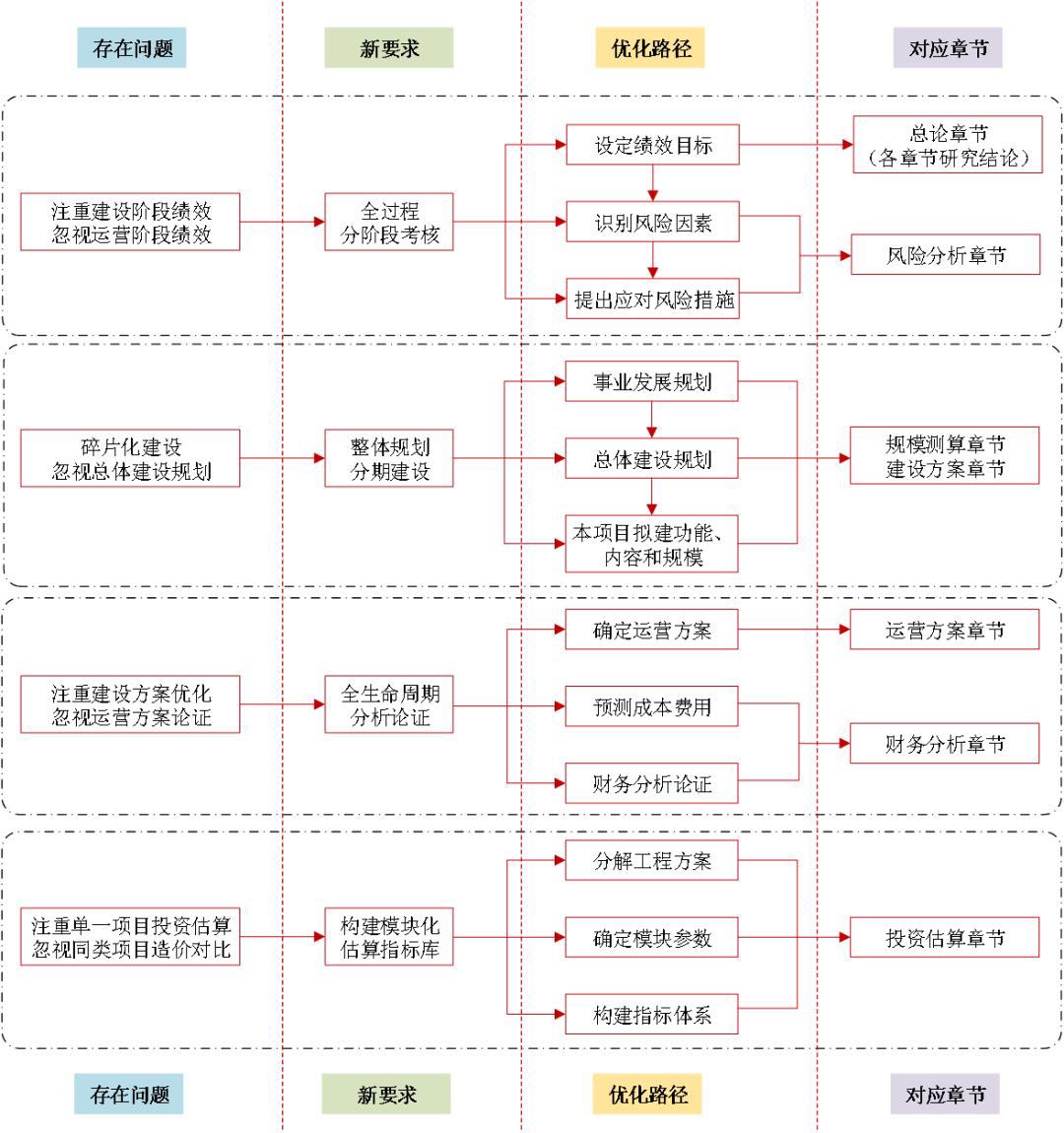 《政府投資條例》是我國深化投融資體制改革和“放管服”改革的重要成果,是我國政府投資領域的首部行政法規。針對以基本公共服務項目為代表的政府投資項目可行性研究突出存在的“碎片化”“階段化”“片面化”等問題,本文結合基本公共服務項目的特點,提出了高質量開展可行性研究的優化路徑,即在重視收集項目資料和現場踏勘工作的基礎上,重視績效考核指標、總體建設規劃、全生命周期分析、模塊化估算指標體系等內容的論證。 一、基本公共服務項目的主要特點 基本公共服務是指由政府主導、保障全體公民生存和發展基本需要、與經濟社會發展水平相適應的公共服務。基本公共服務項目作為保障群眾切身利益和社會民主、公平、穩定的基礎設施,具有維系社會公正、體現社會公益性的作用。 基本公共服務范圍,一般包括保障基本民生需求的教育、就業、社會保障、醫療衛生、計劃生育、住房保障、文化體育等領域的公共服務;廣義上,還包括與人民生活環境緊密關聯的交通、通信、公用設施、環境保護等領域的公共服務,以及保障安全需要的公共安全、消費安全和國防安全等領域的公共服務。本文中的基本公共服務項目是指狹義基本公共服務領域內的工程建設項目,具有項目公益性強、重點保基本需求、供給主體多元化、政府監管力度大等特點。 (一)公益屬性顯著 基本公共服務項目的基本特征是公益性,具體表現在三個方面。其一,該類項目多為民生項目,以保障全體公民生存和發展的基本需求為目的,需要體現均等化、普惠化和便捷化;其二,該類項目具備較強的社會效益、生態效益,受益群體廣泛、外部效果顯著、可持續影響突出,對調整社會結構、維護社會穩定、促進經濟社會協調健康發展有積極作用;其三,該類項目不以營利為目的,具有投資額度多、建設規模大、服務年限長、收益時間滯后、投資回報率低等特點,一般由政府“兜住底線”。 (二)重點保基本需求 基本公共服務項目的核心界定是保基本。其一,基本的范圍和內容應隨著當地經濟社會發展水平和階段的提高進行動態調整;其二,該類項目的決策、建設、管理、供給以及績效評價應形成系統性、整體性和制度性;其三,該類項目的功能定位、建設標準、建設規模和資源配置應嚴格遵循國家、行業和地方相關標準和規范,不得隨意擴大建設規模,提高建設標準。 (三)供給主體多元化 基本公共服務項目基于“公益性”和“保基本”兩大典型特征,原本屬于政府職責范圍,目前已初步構建政府主導、社會參與、公辦民辦并舉的多元化建設模式。其一,政府直接投資的項目,應做好財力保障,加快重大項目建設運營;其二,政府購買服務的項目,應積極引導社會力量參與,推廣政府和社會資本合作(PPP)模式。 (四)政府監管力度大 基本公共服務項目一般為政府投資項目,既直接關系公共利益,又是政府履行職能的主要方式,必須加強全過程監管。其一,決策階段政府需審批項目建議書、可行性研究報告、初步設計概算和招標方案;其二,實施階段項目單位需如實報送政府投資項目開工建設、建設進度、竣工驗收等基本信息,政府需采取在線監測、現場核查等監管方式,并在項目竣工后審查決算報告;其三,全面實施預算績效管理,對實施期超過一年的重大項目實行全周期跟蹤問效,建立動態評價調整機制。 二、新時期高質量開展可行性研究的新要求 近年來,我國在投融資管理方面出臺了《政府投資條例》《企業投資項目核準和備案管理條例》《中共中央 國務院關于深化投融資體制改革的意見》《項目支出績效評價管理辦法》《全國投資項目在線審批監管平臺運行管理暫行辦法》等一系列政策法規,對基本公共服務項目高質量開展可行性研究提出了新要求。 (一)由碎片化建設轉向整體規劃、分期建設 基本公共服務項目普遍不注重對社會需求的調查研究,對項目功能定位和建設規劃研究不足,未能統籌考慮近期建設和遠期發展需求,還停留在簡單、盲目的碎片化建設層面,致使“建好即落后”“建好即改造”“建成不利用”等問題層出不窮,影響基本公共服務功能的有效發揮,導致服務質量和效率下降。 因此,首先該類項目行政主管部門應根據本領域基本公共服務和空間布局現狀以及未來發展需求編制行業發展規劃,明確發展目標、空間布局及重大項目等,為項目實施提供行業規劃依據;其次,該類項目的可行性研究要以本領域行業發展規劃為依托,增加總體建設規劃研究,主要包括需求分析、功能定位、規模測算、現狀設施利用方案和分期實施方案等。總體建設規劃應具有約束性和權威性,其所確定的建設項目、內容和規模不得隨意變動。 (二)由建設成本管理轉向全生命周期成本管理 “重建設投入,輕運營管理”,是政府投資項目的“通病”,基本公共服務項目也亦然。基本公共服務的設施設備必須與運營階段的運營主體、運營模式、人員配置和資源保障相銜接,形成整體性、系統性、協同性方案,才能真正實現基本公共服務項目的價值。 因此,該類項目的可行性研究應打破條塊分割的投資管理體制,實施“工程建設+設備采購+信息化建設+開辦費”的全口徑總投資概念。同時,重視運營方案研究,在此基礎上,對經營性項目的財務盈利能力、債務清償能力和財務可持續性進行分析