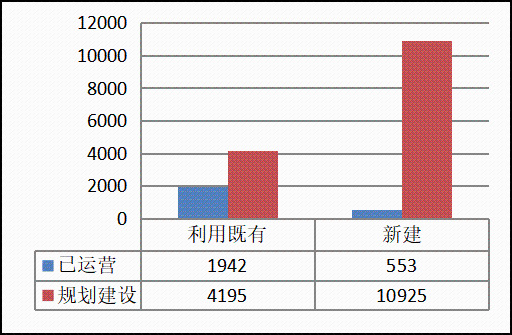 自相關(guān)文件發(fā)布以來,各省市積極推進(jìn)市域(郊)鐵路建設(shè),取得了一定的成績。據(jù)有關(guān)資料統(tǒng)計(jì),截至2019年,我國市域(郊)鐵路已運(yùn)營線路里程約2495公里,其中利用既有線路1942公里,新建線路553公里。擬規(guī)劃線路里程約15120公里,其中利用既有線路4195公里,新建線路10925公里。已運(yùn)營和規(guī)劃建設(shè)市域(郊)鐵路里程見圖1所示。