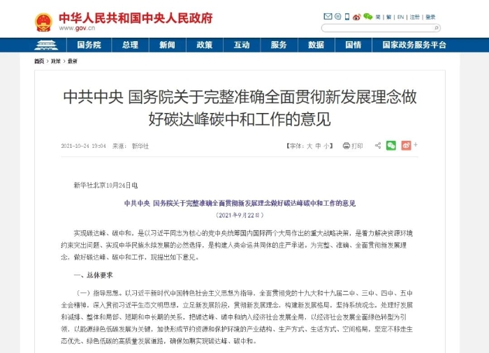 2020年9月,在第七十五屆聯合國大會一般性辯論上,習近平總書記代表中國向世界莊嚴承諾:二氧化碳排放力爭于2030年前達到峰值,努力爭取2060年前實現碳中和。 一年后,中共中央、國務院公布了一份重磅文件——《關于完整準確全面貫徹新發展理念做好碳達峰碳中和工作的意見》(以下簡稱《意見》)。 這份文件,對習近平承諾的碳達峰、碳中和目標進行了系統謀劃和總體部署。作為未來一個時期內指導“雙碳”工作的綱領性文件,這份《意見》相當值得研究學習。