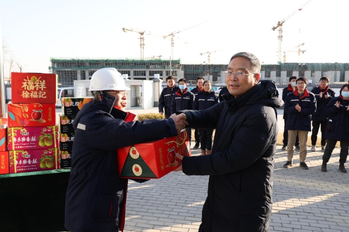 春節將至,歲寒情暖。2022年1月11日下午,中咨公司黨委書記、董事長、總經理茍護生一行,赴所屬的中咨工程管理咨詢有限公司(以下簡稱中咨管理公司)駐北京東壩北西區一線項目部進行安全生產督導檢查和走訪慰問,進一步壓實春節前后關鍵節點安全生產責任,并為一線員工參與首都東北門戶重點工程建設送去關心和叮囑。
