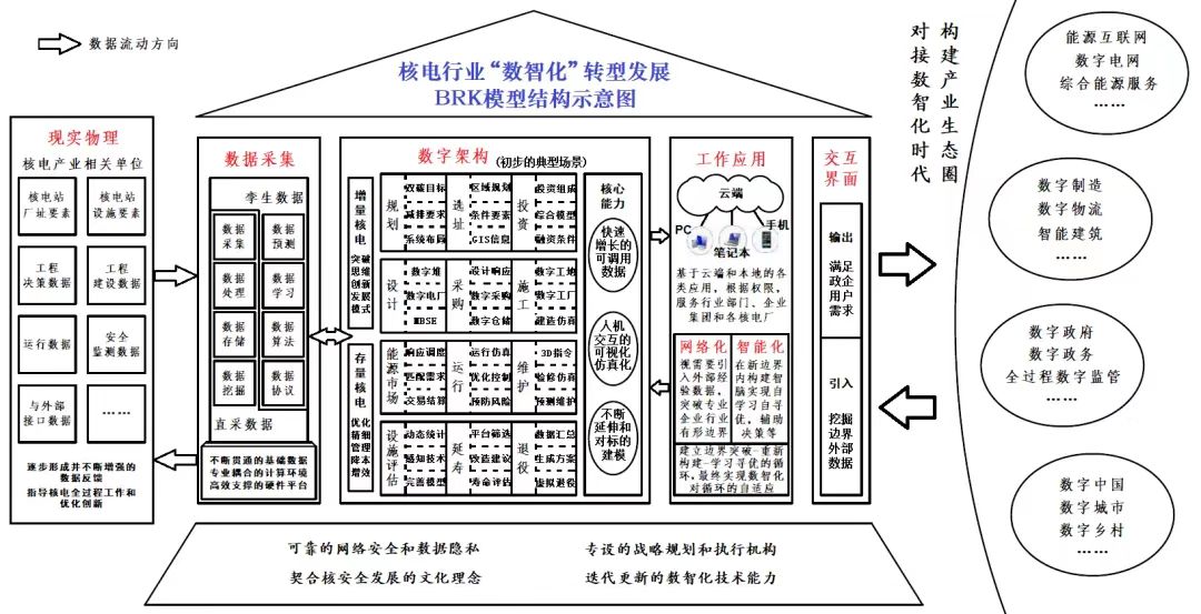 編者按:我國力爭2030年前實現碳達峰、2060年前實現碳中和,是黨中央經過深思熟慮作出的重大戰略決策,事關中華民族永續發展和構建人類命運共同體。能源領域碳排放總量大、占比高,是實現綠色低碳轉型和高質量發展的關鍵。公司能源業務部成立了以部門領導為龍頭、以青年黨員為骨干的“3060”研究小組,貫徹新發展理念和能源安全新戰略,對以新能源為主體的新型電力系統、碳排放和水電、新能源、核電、儲能、煤炭等方面高質量發展進行了探索性研究,以推動構建清潔低碳安全高效的能源體系。為促進研究成果的應用,本公眾號將核心研究成果以系列文章的形式陸續刊發,供業界同仁參考。 “兩個構建”背景下核電“數智化”發展思路與路徑研究 黃文 丁嵐 柴進進 摘要:在我國能源和電力產業,“數智化”因對能源要素配置效率優化、供需匹配協調、綜合能效提升乃至“兩個構建”實施成效的關鍵作用,長期以來備受各方關注。但在核電領域,對于“數智化”發展總體目標和實施路徑的研究一直被忽視。鑒于此,本文在總結相關行業經驗的基礎上,總結提出核電“數智化”發展的總體目標及相關要素,并以當前我國核電發展現狀及“數智化”的關鍵需求為切入點,探討形成了近期我國核電“數智化”發展實施路徑。 關鍵詞:核電;“數智化”;總體目標;BRK模型;發展路徑 一、引言 當前我國能源和電力產業正在經歷“百年未有之大變局”,在國家“碳達峰、碳中和”重大戰略決策指導下,以“兩個構建”(構建清潔低碳安全高效的能源體系、構建新能源占比逐漸提高/以新能源為主體的新型電力系統)為重點任務的能源綠色低碳轉型行動正穩步推進[1]。總結世界能源低碳轉型的歷史經驗,其往往與科技革命相伴相生、融合并進,以工藝技術的不斷創新和產業模式的升級再造等,在能源低碳轉型同時實現效率提升,推進社會生產力發展[2]。如能源從木柴到煤炭、煤炭到石油及電力的低碳轉型分別與兩次革命中蒸汽機以及內燃機、發電機的發明和廣泛應用密不可分[3]。 目前,全球新一輪科技革命正當其時,以大數據、云計算、物聯網、移動互聯網、人工智能等為代表的“數智化”(數字化、網絡化、智能化)技術及產業正不斷壯大,已實際成為這一輪變革的核心驅動和關鍵內容。在我國,“數智化”技術也在全面滲透基礎工業及經濟社會發展,不僅全面影響和改變了人們的生產生活方式,并已催生和推動我國數字經濟向更繁榮、更深化和更規范的階段發展[4]。 在我國能源和電力產業,“數智化”也因對能源要素配置效率優化、供需匹配協調、綜合能效提升乃至“兩個構建”實施成效的關鍵作用,長期以來備受各方關注。圍繞如何通過“數智化”發展促進我國能源低碳轉型,不少學者及相關機構已開展了大量研究。具體研究分為三類,第一類是以能源互聯網框架下的綜合能源系統為載體,聚焦“數智化”技術對多能源參與調節的支撐作用[5-7],保障能源安全供應和高效匹配;第二類是以“雙碳目標”下新型電力市場為載體,研究能源系統和市場數據的互聯互通、有機耦合[8-10],實現系統能效和市場績效提升;第三類則從“數智化”自身出發,對在能源各行業的相關理念、關鍵技術及應用前景進行闡述[11-13]。目前這些研究多關注于能源流通和消費領域,如電網和電力市場,生產領域則以火電、可再生能源或圍繞其建立的綜合能源系統為主要研究對象,如“源網荷儲”“風光水火儲”等,對核電“數智化”發展的研究分析相對較少。 現有對核電“數智化”發展的研究,集中在各核電集團運行技術部門或核電運營單位開展。如汪映榮、徐國彬、伍吉澤和干依燃等[14-17]分別論述了數字化核電廠的定義、5層模型、功能架構和關鍵技術等。潘保林、王謙和張陸洋等[18-20]分別研究分析了數字孿生、智能技術和5G通信技術等在核電領域中的可能應用場景。邱杰峰和孫宇[21-22]分別針對核電具體堆型(“華龍一號”)及建設階段進行了數字化實踐探索。孫奇[23]提出了智能核電理念、全過程實施總體架構及部分應用方向。但歸納總結相關調研文獻,研究內容多集中在“數智化”技術在核電行業本身的應用方向及相應的功能前景,對核電“數智化”發展總體目標和實施路徑的研究受到忽視。本文嘗試從該視角出發,在總結相關行業經驗的基礎上,總結提出核電“數智化”發展的總體目標及相關要素,并以當前我國核電發展現狀及“數智化”的關鍵需求為切入點,探討形成近期我國核電“數智化”發展實施路徑。 二、電力行業對數字化和智能化的界定及理解 數字化電廠的概念早在20世紀末就已出現,早期電廠采用了數字化控制技術,就可算作數字化電廠。2012年我國電力行業標準《火力發電廠熱工自動化術語》(DL/T701-2012)仍部分沿用了該傳統思路,將數字化電廠定義為“電廠數字化達到一定程度后的概念。電廠各級控制和管理系統(包括現場設備等基礎單元)均進入數字化后稱為數字化電廠”。 隨著信息技術對電力生產過程效能的提升,逐漸為電力行業所認識和關注,電廠智能化的概念也就在2010年前后應運而生。《火力發電廠熱工自動化術語》對電廠智能化的定義是,“廣泛采用現代信息處理和通信技術、智能傳感技術、智能執行機構技術,以及智能控制方法和管理決策技