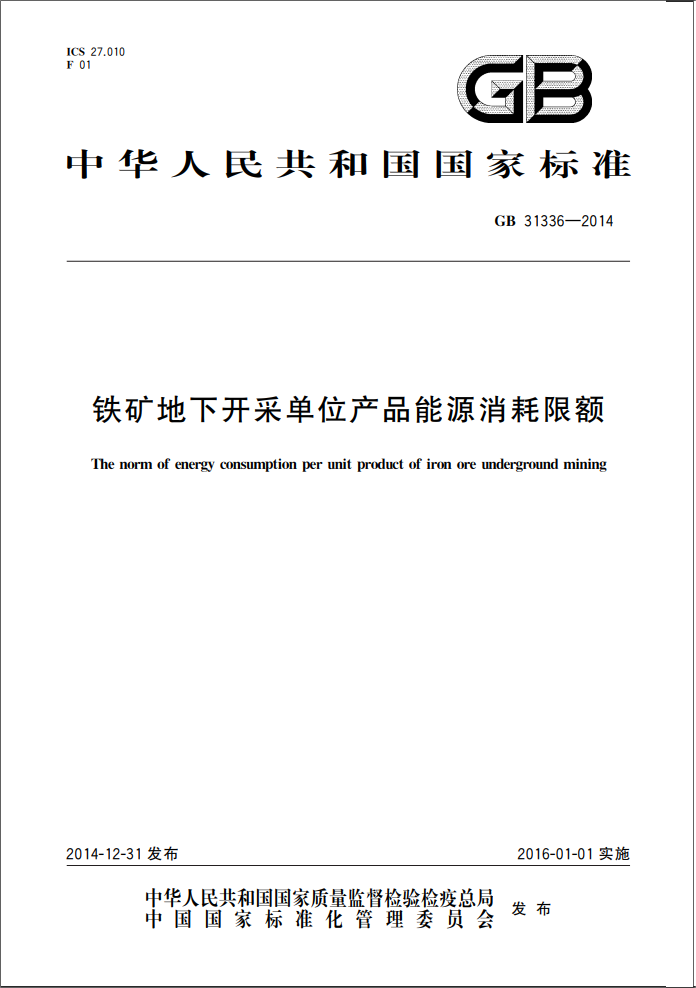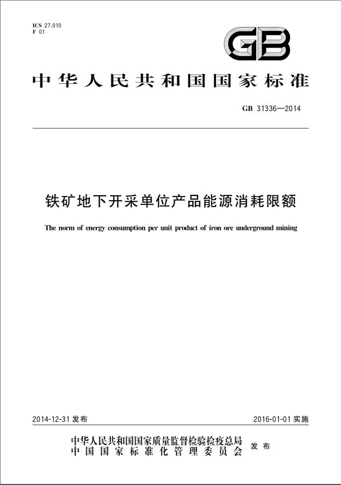 鐵礦地下開采單位產(chǎn)品能源消耗限額