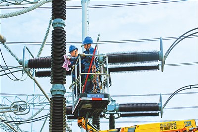 南方電網(wǎng)玉林供電局500千伏美林站美久甲線(xiàn)是廣西“四橫三縱”主網(wǎng)架的骨干輸電線(xiàn)路,是北部灣沿海城市間的重要電力通道,為廣西加快地區(qū)新型工業(yè)化進(jìn)程提供充足的電力支撐。圖為近日電力工人正在對(duì)美久甲線(xiàn)開(kāi)展春季檢修工作,保障電力可靠傳輸。