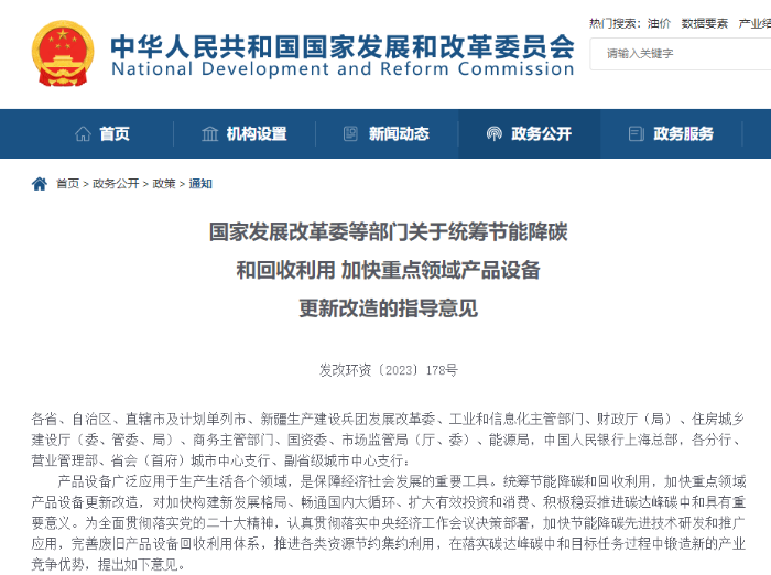 ——《關于統籌節能降碳和回收利用 加快重點領域產品設備更新改造的指導意見》解讀