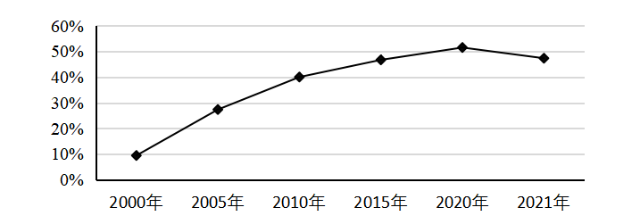 圖3 2000年以來中國鋼產量占全球鋼產量比重