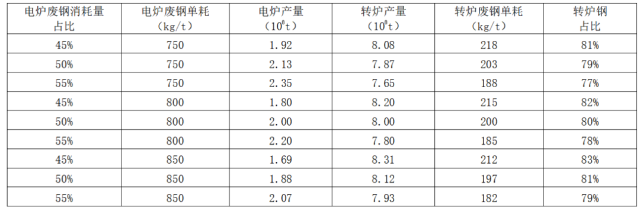 表2 鋼產量9億噸、廢鋼利用量4億噸時,不同條件下轉爐鋼占比測算