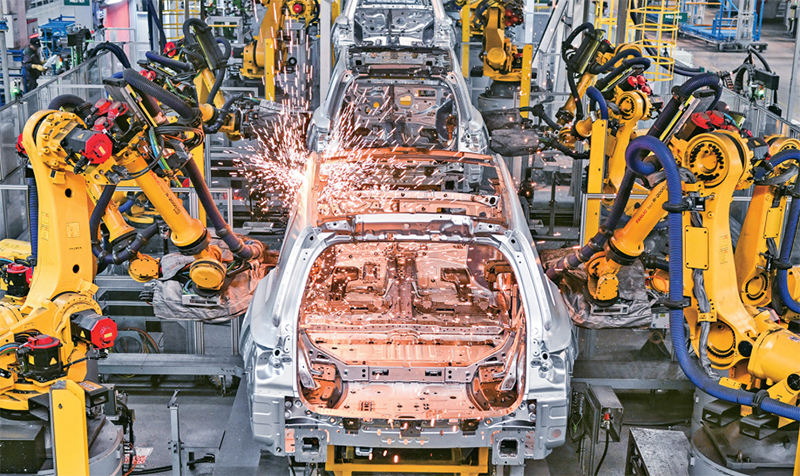 加快發(fā)展新質(zhì)生產(chǎn)力,要推動(dòng)數(shù)字技術(shù)在先進(jìn)制造業(yè)中的應(yīng)用擴(kuò)散,形成兩者之間相互支撐、相互促進(jìn)的良性循環(huán)。圖為2024年1月10日,在理想汽車(chē)常州基地車(chē)間,機(jī)械手臂在進(jìn)行焊接作業(yè)。 新華社記者 季春鵬/攝 發(fā)展新質(zhì)生產(chǎn)力要形成新動(dòng)能。科技創(chuàng)新、產(chǎn)業(yè)創(chuàng)新、企業(yè)創(chuàng)新、市場(chǎng)創(chuàng)新、產(chǎn)品創(chuàng)新、業(yè)態(tài)創(chuàng)新、管理創(chuàng)新等各領(lǐng)域的創(chuàng)新,以及這些創(chuàng)新成果在更大范圍內(nèi)的擴(kuò)散應(yīng)用,共同構(gòu)成了支撐高質(zhì)量發(fā)展的新動(dòng)能,是新質(zhì)生產(chǎn)力的整體呈現(xiàn)。根據(jù)國(guó)家統(tǒng)計(jì)局?jǐn)?shù)據(jù),2022年,我國(guó)以新產(chǎn)業(yè)、新業(yè)態(tài)、新商業(yè)模式為核心內(nèi)容的“三新”經(jīng)濟(jì)增加值為210084億元,相當(dāng)于國(guó)內(nèi)生產(chǎn)總值的比重為17.36%。2023年全年,規(guī)模以上工業(yè)中裝備制造業(yè)增加值比上年增長(zhǎng)6.8%,占規(guī)模以上工業(yè)增加值比重為33.6%;高技術(shù)制造業(yè)增加值增長(zhǎng)2.7%,占規(guī)模以上工業(yè)增加值比重為15.7%。新能源汽車(chē)產(chǎn)量944.3萬(wàn)輛,比上年增長(zhǎng)30.3%;太陽(yáng)能電池(光伏電池)產(chǎn)量5.4億千瓦,增長(zhǎng)54.0%;服務(wù)機(jī)器人產(chǎn)量783.3萬(wàn)套,增長(zhǎng)23.3%;3D打印設(shè)備產(chǎn)量278.9萬(wàn)臺(tái),增長(zhǎng)36.2%。規(guī)模以上服務(wù)業(yè)中,戰(zhàn)略性新興服務(wù)業(yè)企業(yè)營(yíng)業(yè)收入比上年增長(zhǎng)7.7%。總的看,我國(guó)新動(dòng)能正持續(xù)成長(zhǎng)壯大,成為推動(dòng)高質(zhì)量發(fā)展的重要?jiǎng)恿υ础?/p> 三、加快發(fā)展新質(zhì)生產(chǎn)力,要抓好改造提升傳統(tǒng)產(chǎn)業(yè)、培育壯大新興產(chǎn)業(yè)、超前布局建設(shè)未來(lái)產(chǎn)業(yè) 現(xiàn)代化產(chǎn)業(yè)體系是現(xiàn)代化國(guó)家的物質(zhì)技術(shù)基礎(chǔ)。習(xí)近平總書(shū)記強(qiáng)調(diào):“要及時(shí)將科技創(chuàng)新成果應(yīng)用到具體產(chǎn)業(yè)和產(chǎn)業(yè)鏈上,改造提升傳統(tǒng)產(chǎn)業(yè),培育壯大新興產(chǎn)業(yè),超前布局建設(shè)未來(lái)產(chǎn)業(yè),加快構(gòu)建以先進(jìn)制造業(yè)為支撐的現(xiàn)代化產(chǎn)業(yè)體系。”這一重要論述指明了加快發(fā)展新質(zhì)生產(chǎn)力的基本路徑。 改造提升傳統(tǒng)產(chǎn)業(yè)。一是推動(dòng)邁向價(jià)值鏈中高端。深入實(shí)施制造業(yè)重大技術(shù)改造升級(jí)和大規(guī)模設(shè)備更新工程,加快先進(jìn)適用技術(shù)推廣應(yīng)用。鼓勵(lì)面向傳統(tǒng)制造業(yè)重點(diǎn)領(lǐng)域開(kāi)展關(guān)鍵共性技術(shù)研究和產(chǎn)業(yè)化應(yīng)用示范。完善科技成果信息發(fā)布和共享機(jī)制。推動(dòng)傳統(tǒng)制造業(yè)優(yōu)勢(shì)領(lǐng)域鍛長(zhǎng)板,推進(jìn)強(qiáng)鏈延鏈補(bǔ)鏈,加強(qiáng)新技術(shù)新產(chǎn)品創(chuàng)新迭代。支持企業(yè)聚焦基礎(chǔ)零部件、基礎(chǔ)元器件、基礎(chǔ)材料、基礎(chǔ)軟件、基礎(chǔ)工藝和產(chǎn)業(yè)技術(shù)基礎(chǔ)等薄弱領(lǐng)域,加快攻關(guān)突破和產(chǎn)業(yè)化應(yīng)用,強(qiáng)化傳統(tǒng)制造業(yè)基礎(chǔ)支撐體系。實(shí)施卓越質(zhì)量工程。二是加快數(shù)字化、網(wǎng)絡(luò)化、智能化改造。促進(jìn)人工智能、大數(shù)據(jù)等技術(shù)與制造全過(guò)程、全要素深度融合,利用數(shù)字技術(shù)對(duì)傳統(tǒng)產(chǎn)業(yè)進(jìn)行全方位、全鏈條改造,推動(dòng)產(chǎn)業(yè)數(shù)字化。支持重點(diǎn)行業(yè)建設(shè)“產(chǎn)業(yè)大腦”,匯聚行業(yè)數(shù)據(jù)資源,推廣共性應(yīng)用場(chǎng)景,服務(wù)全行業(yè)轉(zhuǎn)型升級(jí)和治理能力提升。三是強(qiáng)化綠色低碳發(fā)展。加快綠色科技創(chuàng)新和先進(jìn)綠色技術(shù)推廣應(yīng)用,做強(qiáng)綠色制造業(yè),發(fā)展綠色服務(wù)業(yè),壯大綠色能源產(chǎn)業(yè),發(fā)展綠色低碳產(chǎn)業(yè)和供應(yīng)鏈,構(gòu)建綠色低碳循環(huán)經(jīng)濟(jì)體系。制修訂一批低碳、節(jié)能、節(jié)水、資源綜合利用、綠色制造等重點(diǎn)領(lǐng)域標(biāo)準(zhǔn),促進(jìn)資源節(jié)約和材料合理應(yīng)用。持續(xù)優(yōu)化支持綠色低碳發(fā)展的經(jīng)濟(jì)政策工具箱,發(fā)揮綠色金融的牽引作用,打造高效生態(tài)綠色產(chǎn)業(yè)集群。 培育壯大新興產(chǎn)業(yè)。一是強(qiáng)化市場(chǎng)引領(lǐng)作用。加快全國(guó)統(tǒng)一大市場(chǎng)建設(shè),著力破除各種形式的地方保護(hù)和市場(chǎng)分割,充分發(fā)揮我國(guó)超大規(guī)模國(guó)內(nèi)市場(chǎng)優(yōu)勢(shì),持續(xù)擴(kuò)大新興產(chǎn)業(yè)市場(chǎng)空間、豐富應(yīng)用場(chǎng)景,加速新興產(chǎn)業(yè)規(guī)模擴(kuò)容和技術(shù)迭代,推動(dòng)更多新興產(chǎn)業(yè)發(fā)展壯大為支柱產(chǎn)業(yè)。抓住新能源汽車(chē)、鋰電池等新產(chǎn)品快速發(fā)展的有利時(shí)機(jī),推動(dòng)