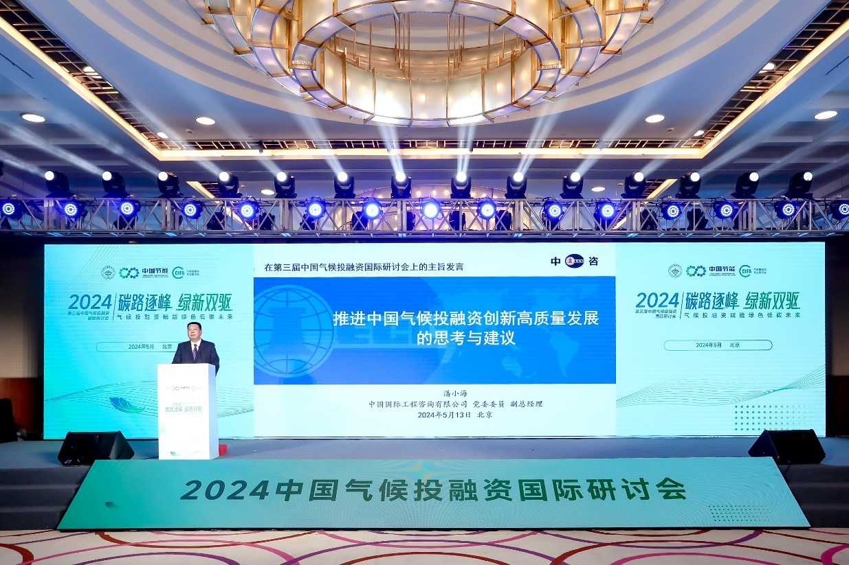2024年5月13日,由中國環境科學學會和中國節能環保集團有限公司主辦的“第三屆中國氣候投融資國際研討會”在京舉行,中咨公司黨委委員、副總經理潘小海受邀出席開幕式主論壇,并作主旨發言。