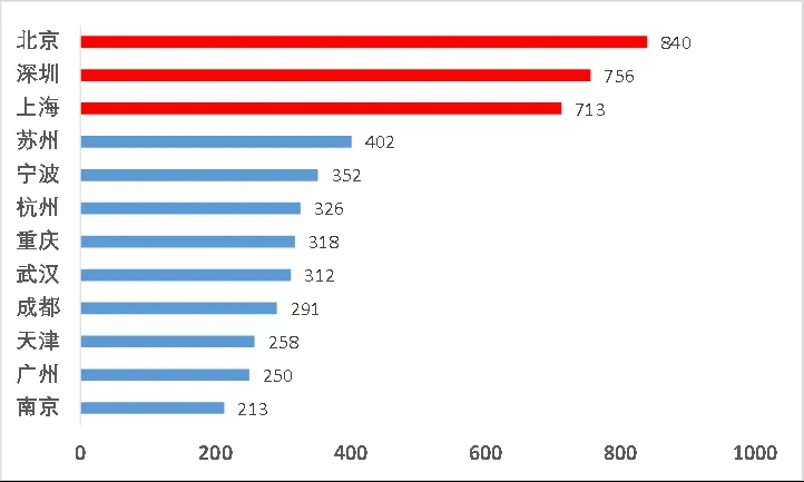 圖1 專精特新“小巨人”企業前12強城市分布(單位:家)