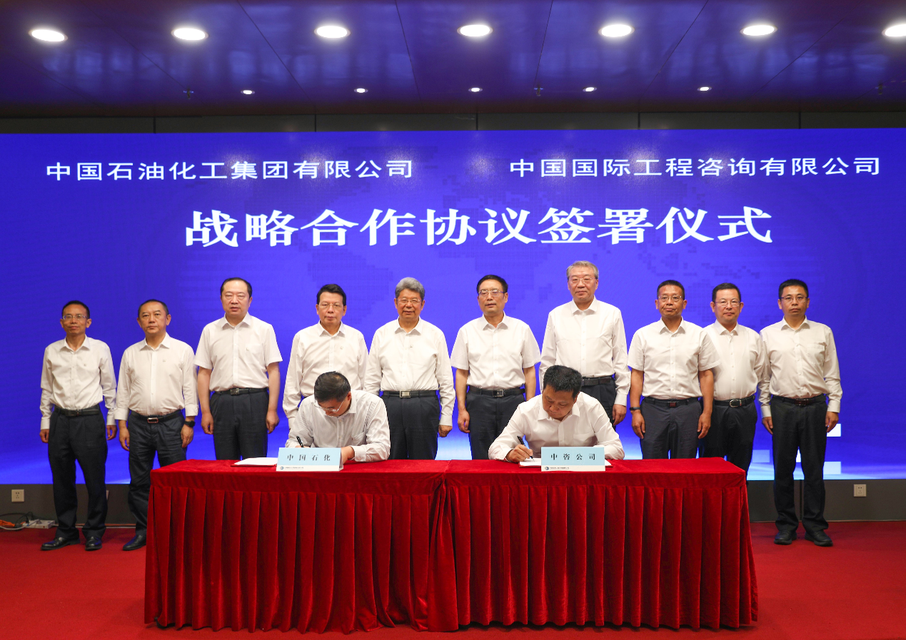 2024年7月9日,中咨公司與中國石油化工集團有限公司(以下簡稱中國石化)在中咨大廈簽署戰略合作協議,攜手譜寫石化工業高質量發展新篇章。
