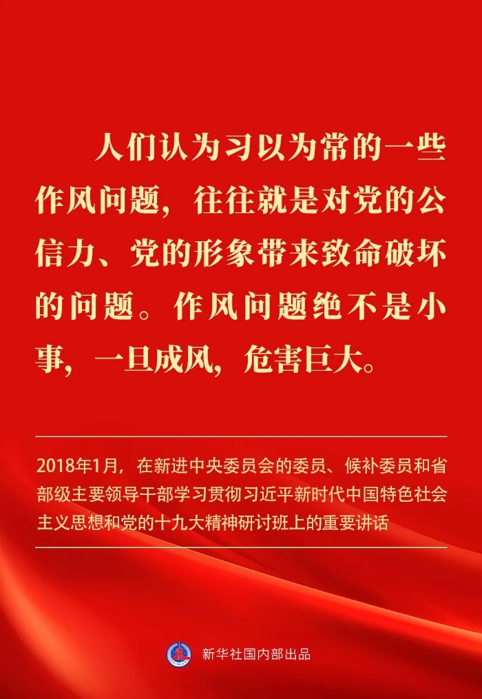 中央黨的建設(shè)工作領(lǐng)導(dǎo)小組近日召開(kāi)會(huì)議指出,黨中央決定,自2025年全國(guó)兩會(huì)后至7月在全黨開(kāi)展深入貫徹中央八項(xiàng)規(guī)定精神學(xué)習(xí)教育。 黨的十八大以來(lái),以習(xí)近平同志為核心的黨中央從制定和落實(shí)中央八項(xiàng)規(guī)定開(kāi)局破題,堅(jiān)持自上而下、以上率下,解決了新形勢(shì)下作風(fēng)建設(shè)抓什么、怎么抓的問(wèn)題。 在全黨扎實(shí)開(kāi)展深入貫徹中央八項(xiàng)規(guī)定精神學(xué)習(xí)教育之際,讓我們一起重溫金句,學(xué)習(xí)習(xí)近平總書記圍繞加強(qiáng)黨的作風(fēng)建設(shè)發(fā)表的一系列重要論述。 | |||||