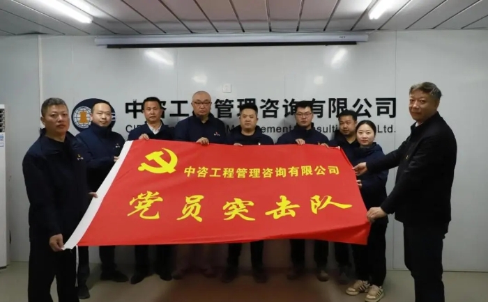近日,中咨管理公司在某重點項目建設現場舉行黨員突擊隊授旗儀式。中咨管理公司黨委書記、董事長陳東升向突擊隊授予隊旗,黨委委員、副總經理楊志強宣讀公司黨委關于成立黨員突擊隊的批復文件,職能部門及參建單位負責人共同見證這一振奮人心的時刻。